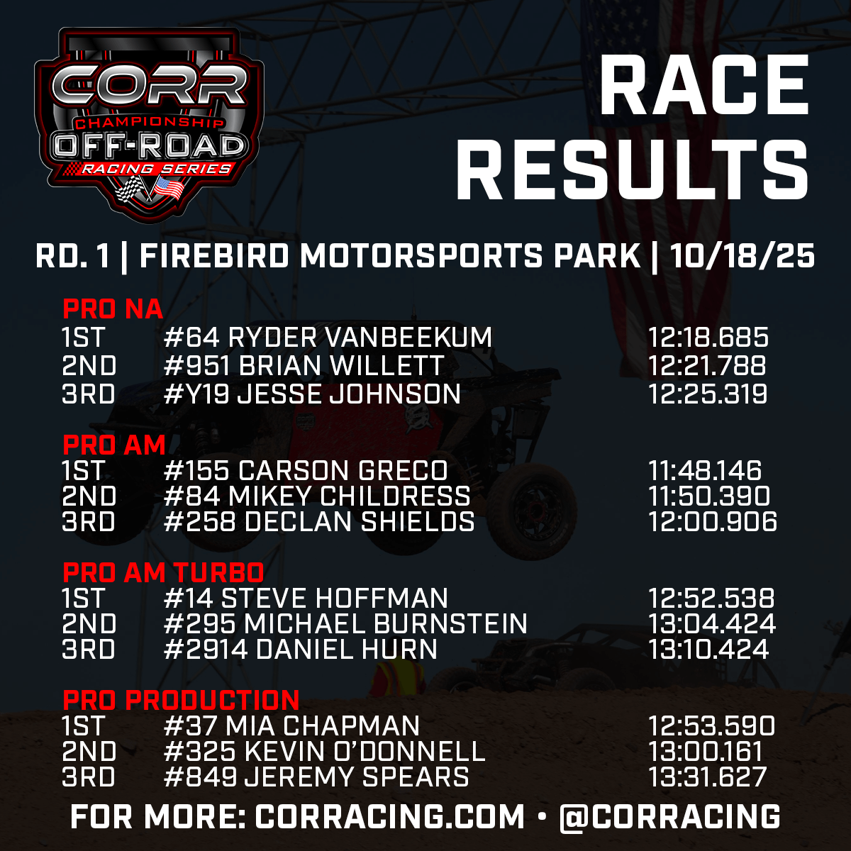 Vendors—we want you too! To learn more about opportunities with CORR, reach out at marketing@corracing.com.