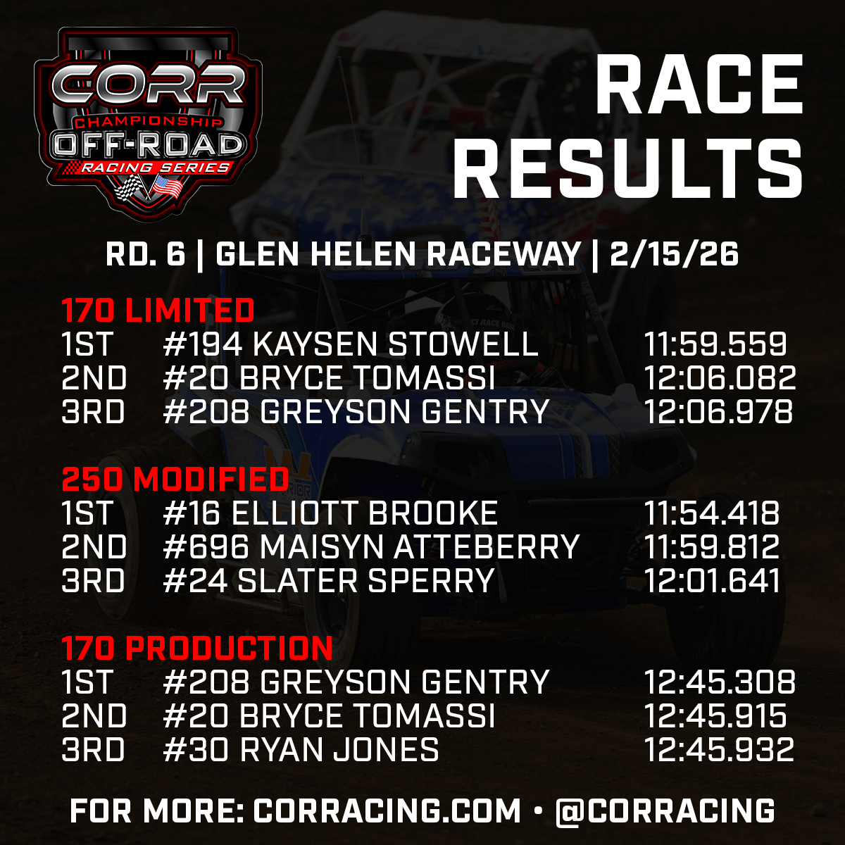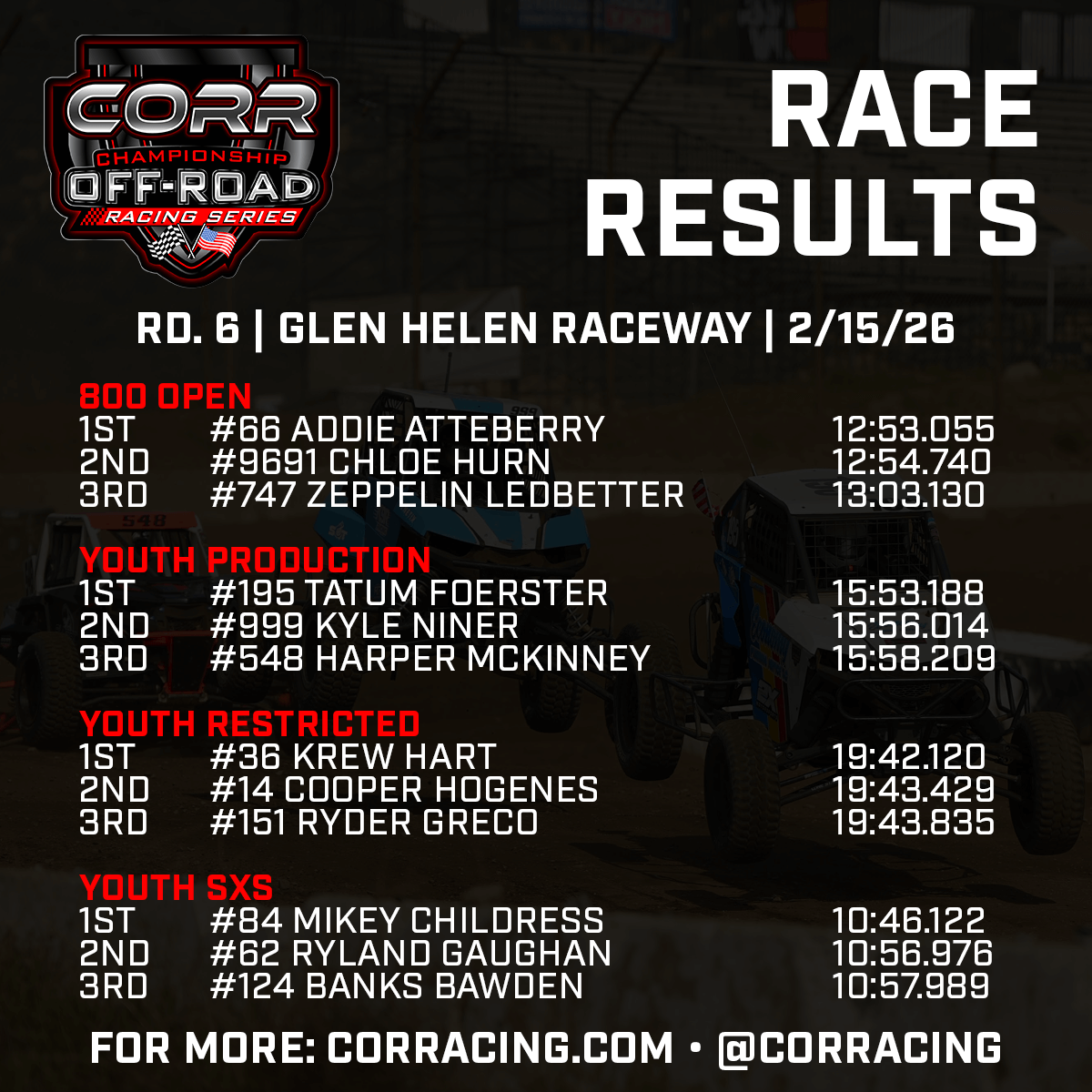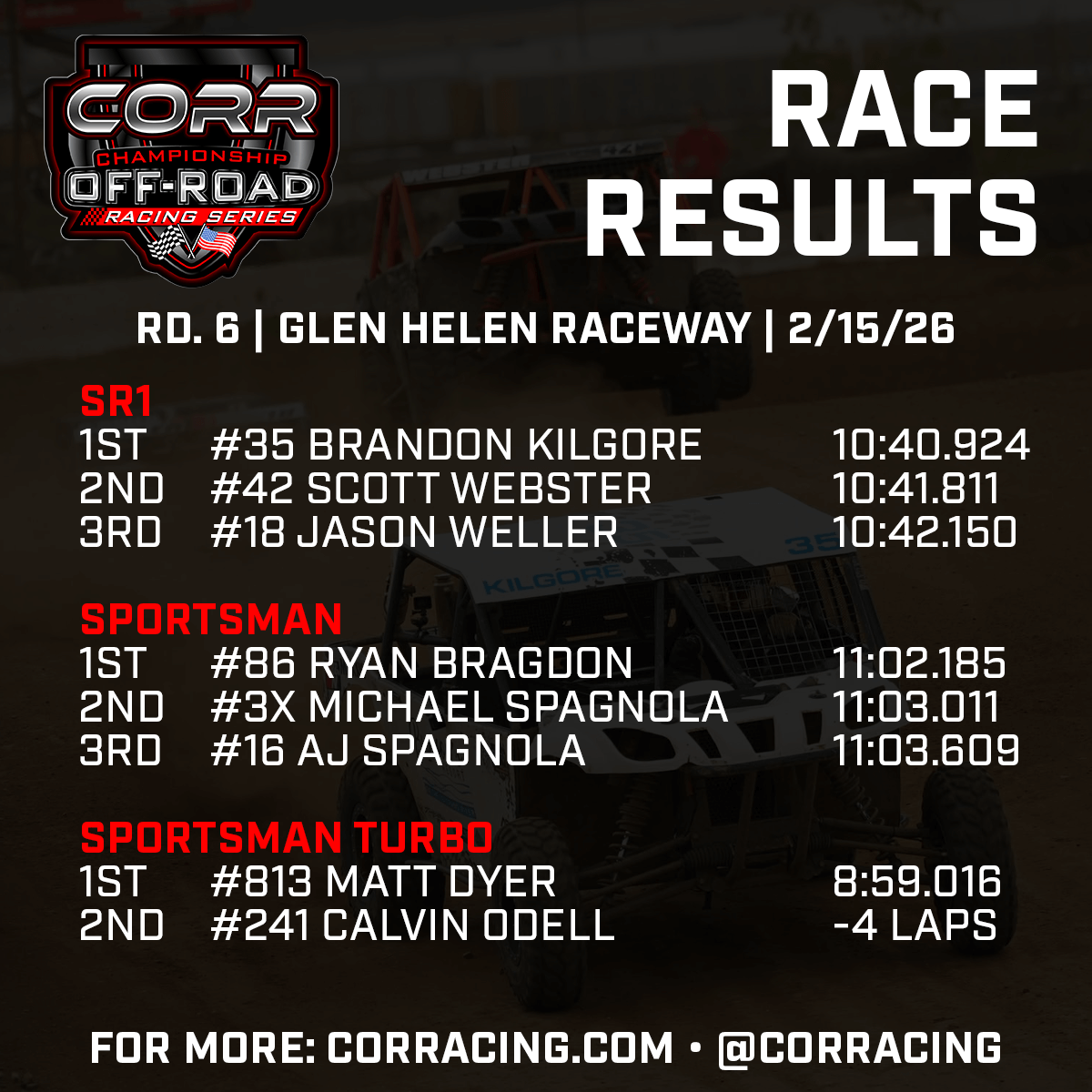 Podium finishers from CORR 2025-26 Round 6 at Glen Helen Raceway were as follows: