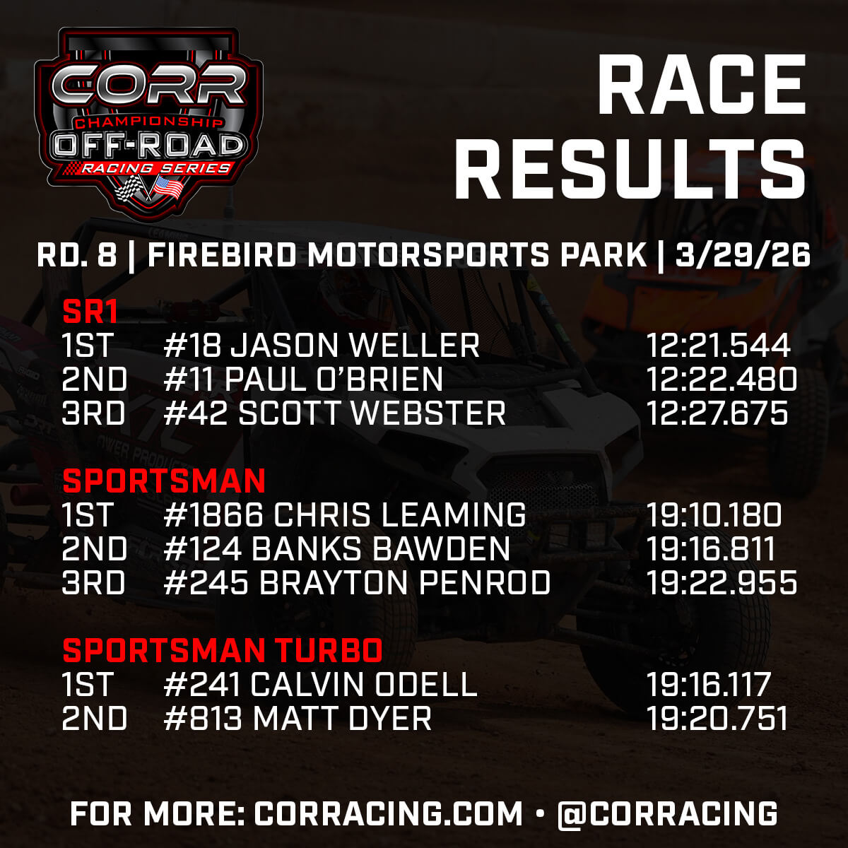 Vendors—we want you too! To learn more about opportunities with CORR, reach out at marketing@corracing.com.